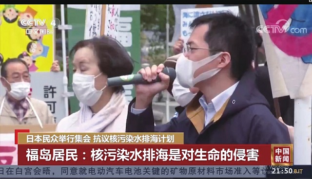 抗議集會(huì)上,“311甲狀腺癌兒童支援網(wǎng)絡(luò)”成員岡田俊子介紹了《核污染水排放入海的爭(zhēng)論點(diǎn)——氚的危險(xiǎn)性》一書。該書作者之一渡邊悅司是福島核泄漏事故的受害者,去年2月因癌癥去世,堅(jiān)決反對(duì)核污染水排放入海是她的遺愿。書中介紹了核污染水對(duì)人體的影響,并指出福島核事故后,當(dāng)?shù)刂辽僖延?00多名兒童確診甲狀腺癌。