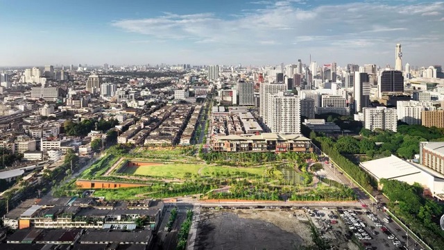 泰國(guó)Landprocess景觀設(shè)計(jì)公司創(chuàng)始人科查孔·沃拉霍姆(Kotchakorn Voraakhom)致力于雨洪管理設(shè)計(jì)。她曾提到:“為什么我們的設(shè)計(jì)思路不是以自然共生,而是要與其為敵呢?”在接受CNN采訪時(shí),她指出:“氣候變化導(dǎo)致城市下沉,現(xiàn)有的基礎(chǔ)設(shè)施已無(wú)法抵御重大洪澇災(zāi)害。”