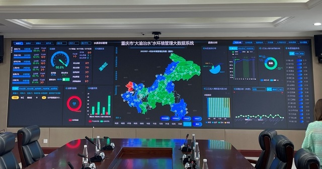 重慶市“大渝治水”水環(huán)境管理大數(shù)據(jù)系統(tǒng)面板。