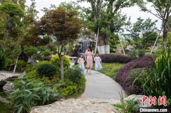 圖為游客在九江市濂溪區(qū)雙溪景觀公園休閑娛樂。