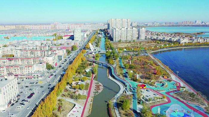 綠脈織網,河湖共治。濱水綠道沿黎明河建設,從北向南串聯起了薩爾圖區的南北城區,沿途連通了薩北湖、蘭德湖、濱洲湖、黎明湖、萬寶湖、三永湖等湖泊。項目與大慶市已開展的湖泊治理工程相銜接,通過濱河、濱湖綠化緩沖帶建設,減少地面徑流污染;湖泊濕地凈化后的雨水回補黎明河后,又能提升河道水質,達到河湖互補共治的效果。