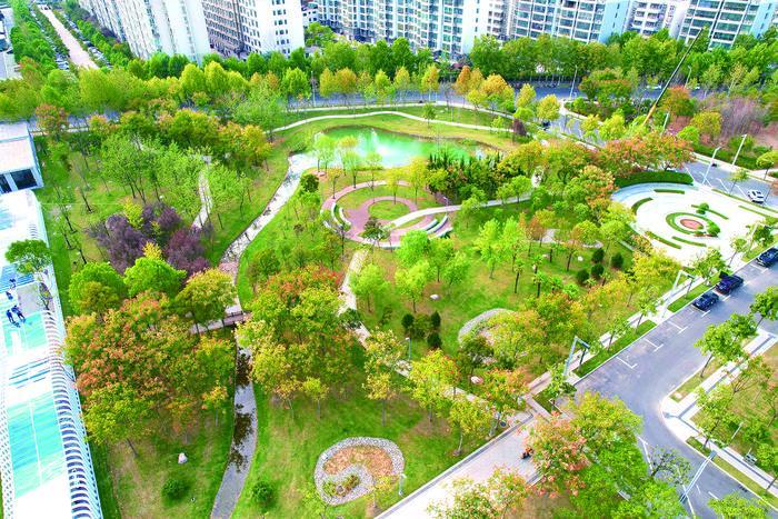 項目改造中充分融入海綿城市建設理念,區域年徑流總量控制率達到75.2%,雨水資源化利用量達到10萬噸/年。項目將地勢低洼、易澇積水、利用率低的場地,改造為具備雨水轉輸、凈化、滯蓄、回用等多功能的海綿設施,同步改造雨污水混錯接、擴建雨水管網;拆除圍墻與綠籬,為市民營造開敞活動空間,配套建設城市書吧、休閑設施、生態停車場,打造宜居、韌性的海綿家園。