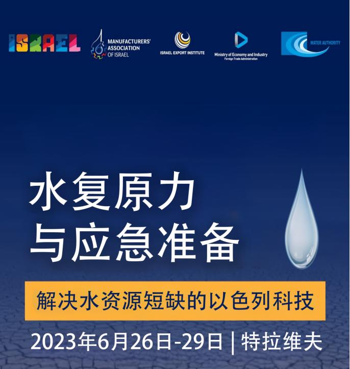 中國城鎮供水排水協會受以色列經濟與產業部及駐華使館的邀請于2023年6月26-29日派員參加了在以色列第二大城市特拉維夫舉行的“2023以色列水復原力與應急準備大會”( the Water resilience & Emergency preparedness event 2023 in Tel Aviv)。本次活動是以色列面向國際社會集中展示其解決水資源短缺以及應對突發事件保證正常供水方面的技術的一次活動。“水復原力”是指水在使用之后通過一系列水處理技術使其恢復到原狀態的能力,在這個理念指導下,污水及海水都可以通過技術成為水資源,這也是以色列在荒漠國土上生存發展的技術保障。