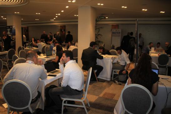 27日下午進行了企業B2B一對一洽談環節,根據會議注冊時參會嘉賓選擇確定的洽談名單逐一進行。參加B2B交流的以色列企業有以色列最大的水務公司Mekorot、海水淡化技術工程公司IDE、空氣制水技術公司Watergen、智慧水務公司KANDO、基于人造衛星的管道漏損探測公司ASTERRA、管網漏損檢測及評估公司Aquarius Spectrum、水質安全實時檢測公司CyWat公司、過濾技術公司Amiad、新型生物處理填料公司AqWise、無線自動抄表數據網絡公司Arad、紫外線消毒技術公司Atlantium、高質量液壓控制閥公司BERMAD、強化生物處理SBP膠囊公司BioCastle、免開挖自動漏損修復公司Curapipe等。