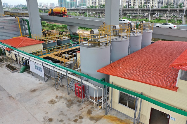 節約用地是本項目處理工藝的重要亮點。易新貴介紹說,天河區屬于中心城區,土地資源緊缺,一體化設備高度集成,占地面積小,非常適合城市中的污水處理需求,“這里是高架橋旁,原來是用來停放城管功能用車,用來做一體化污水處理廠,大大節約了用地成本,也避免了選址難題?!?br />