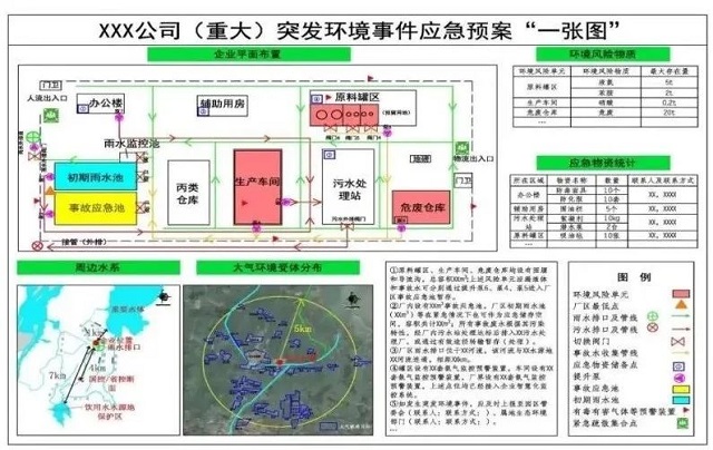 “「一圖」是指突發(fā)環(huán)境事件應(yīng)急預(yù)案圖,包括單位環(huán)境風(fēng)險(xiǎn)單元及主要環(huán)境風(fēng)險(xiǎn)物質(zhì)、環(huán)境應(yīng)急防控設(shè)施分布等內(nèi)容?!竷蓡巍故侵腑h(huán)境風(fēng)險(xiǎn)辨識(shí)清單、環(huán)境風(fēng)險(xiǎn)防范措施清單;「兩卡」是指環(huán)保安全責(zé)任承諾卡(主要負(fù)責(zé)人、環(huán)保負(fù)責(zé)人)、應(yīng)急處理卡?!毙墙忉尩馈?/p>