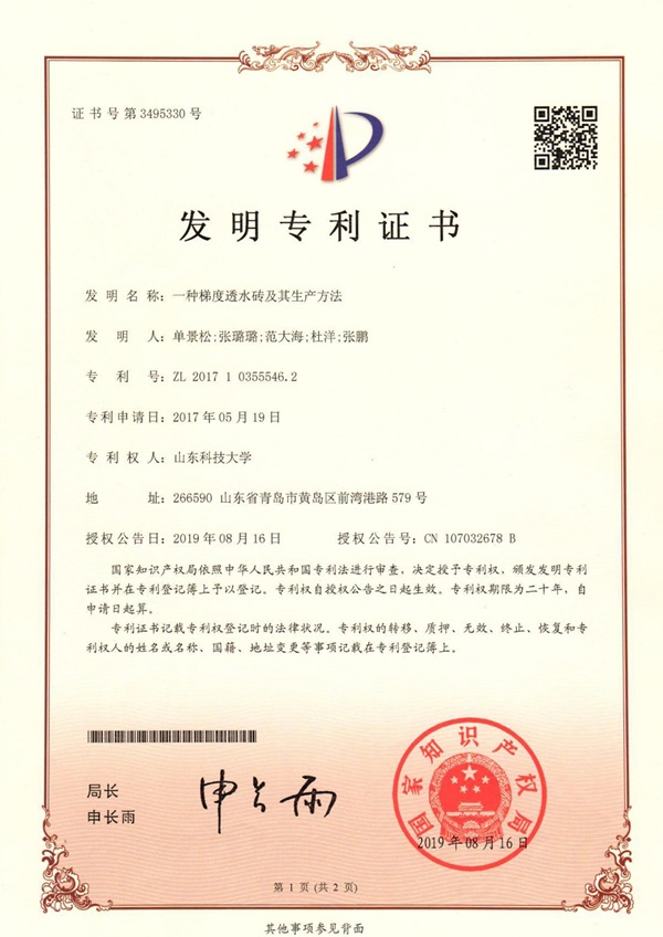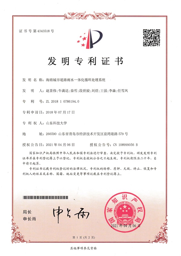 市政道路硬化面積的迅速擴張已成為城市內(nèi)澇的主要致災因素,在國家建設“源頭減排、蓄排結合、排澇除險、超標應急”的城市防洪排澇體系的背景下,市政道路開始推行海綿化改造。但由于各路面結構最優(yōu)滲排水設計不明確,未形成海綿城市道路雨水收集與利用系統(tǒng),導致海綿城市道路實際施工難以落地。我校趙景偉教授、秦哲副教授、單景松教授團隊針對海綿城市道路的施工難題,圍繞海綿城市道路結構與整體設計,研發(fā)了一種新型高性能聚合物透水水泥混凝土,并創(chuàng)新了聚合物透水水泥混凝土施工工藝,最終形成了海綿城市透水路面鋪裝關鍵技術體系,并基于此開發(fā)了海綿城市道路自調(diào)節(jié)雨水收集與綜合利用系統(tǒng)成套關鍵技術。研究成果有力推進了海綿城市道路的發(fā)展,提升了行業(yè)質量水平。相關成果授權發(fā)明專利10項,形成了海綿城市道路建設與模型試驗專利群,相關成果已在青島、濟南、西安、石林等地得到廣泛應用。(記者:任波)