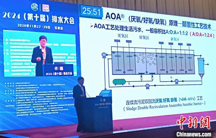 中國工程院院士、北京工業(yè)大學(xué)教授彭永臻做了題為《顛覆性AOA新技術(shù)研究與實(shí)踐——城市污水除磷與極限脫氮》的報(bào)告。彭永臻認(rèn)為,AOA新技術(shù)在城市污水除磷與極限脫氮方面展現(xiàn)出巨大應(yīng)用潛力。他深入剖析了AOA技術(shù)原理、運(yùn)行機(jī)制和應(yīng)用案例,為城市污水處理技術(shù)工藝升級(jí)提供了新的思路和方向。
