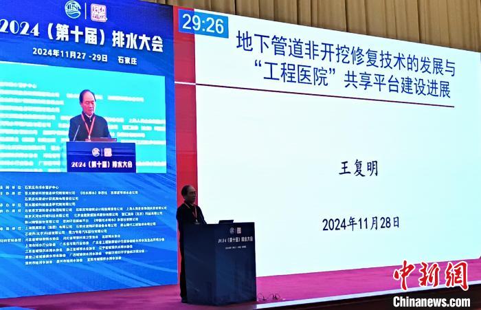 中國工程院院士、中山大學(xué)教授王復(fù)明做了題為《地下管道非開挖修復(fù)技術(shù)的發(fā)展與“工程醫(yī)院”共享平臺(tái)建設(shè)進(jìn)展》的報(bào)告。他系統(tǒng)分析了當(dāng)前城市地下管網(wǎng)、隧道等基礎(chǔ)設(shè)施面臨的水災(zāi)害及病害難題,深入講述了團(tuán)隊(duì)在地下工程滲漏防治、地下管道非開挖修復(fù)等方面取得的成果。他介紹說,當(dāng)前“工程醫(yī)院”已覆蓋水利、土木、交通等絕大多數(shù)工程建設(shè)領(lǐng)域的基礎(chǔ)設(shè)施,為城市排水工程遇到的問題提供了解決方案。