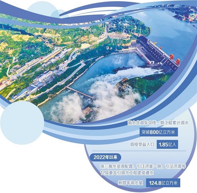 水利部規(guī)劃計(jì)劃司司長張祥偉介紹,目前,南水北調(diào)東中線一期工程累計(jì)調(diào)水突破800億立方米,直接受益人口達(dá)1.85億人。2022年以來,珠三角水資源配置、引江濟(jì)淮一期、引漢濟(jì)渭等12項(xiàng)重大引調(diào)水工程建成通水,新增年調(diào)水量124.8億立方米;西江大藤峽、新疆大石門等24座大型水庫建成投用;新開工的黃河古賢水利樞紐等31項(xiàng)流域防洪控制性工程和重點(diǎn)水源工程建成后可新增供水能力49億立方米。