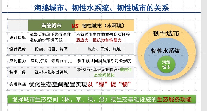 中國環(huán)境報:為更好地實(shí)現(xiàn)城市雨洪管理,我國自2014年起推廣海綿城市。近年來,打造韌性城市成為汛期城市防洪和內(nèi)澇治理的一項(xiàng)解決方案。二者有何聯(lián)系與區(qū)別?