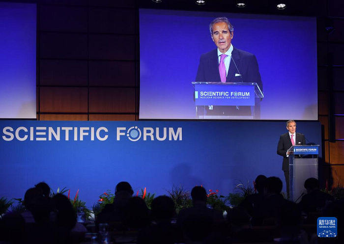 9月16日,在奧地利維也納,國際原子能機構總干事格羅西在“原子用于水資源”科學論壇上致辭。新華社記者賀燦鈴攝