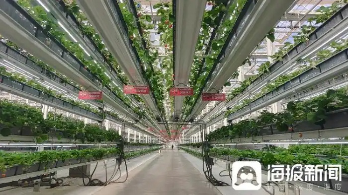 園區(qū)內(nèi)2000余畝的現(xiàn)代農(nóng)業(yè)產(chǎn)業(yè)園重點(diǎn)發(fā)展了草莓、櫻桃、鱸魚養(yǎng)殖三大產(chǎn)業(yè)。連片的草莓棚采用精準(zhǔn)滴灌技術(shù),根據(jù)植物不同生長期的需求,通過芯片精準(zhǔn)控制滴灌水量,全自動(dòng)水肥閉合循環(huán)系統(tǒng)可收集和重新利用營養(yǎng)液,實(shí)現(xiàn)水和肥料的循環(huán)利用,實(shí)現(xiàn)單株耗水節(jié)約66%。在櫻桃大棚里,則靠著人工智能控制技術(shù),給櫻桃樹“變換四季”,實(shí)現(xiàn)錯(cuò)峰成熟,填補(bǔ)國內(nèi)2、3、4月優(yōu)質(zhì)櫻桃的市場空白期。