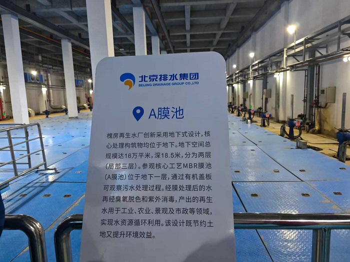北京市槐房再生水廠是北京市“三年行動方案”建設項目,水廠規(guī)模60萬立方米/日,同步在廠區(qū)內采用熱水解+消化+板框脫水的污泥處理工藝,實現污泥的無害化處置,是全國規(guī)模最大、技術領先的封閉式地下再生水廠。水廠運用系統(tǒng)化建設運營理念和北排集團自主創(chuàng)新的“北排膜”、“北排紅菌”、精確曝氣及國際先進的污泥處置技術裝備,建設運營高保障度的排水和再生水設施。其中,建設地下或半地下的全封閉處理設施,既達到再生水回用標準,又實現再生水設施運行無臭味、低噪音,并提高周邊綠化水平。