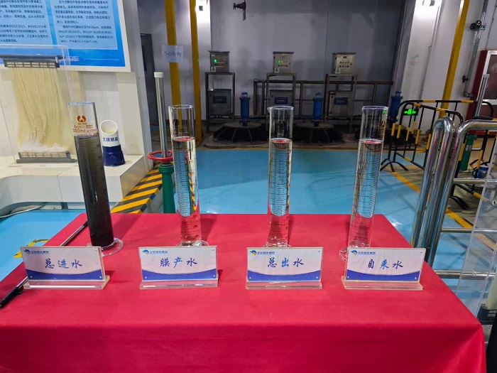 從生物池出來后,污水便進入了膜池。槐房再生水廠應用了北排集團自主研發(fā)的“膜科技”,采用了先進的膜生物反應器(MBR)污水處理工藝,隱藏于污水下的MBR工藝超濾膜產品,可以高效去除污水中99%的懸浮固體以及絕大部分細菌、微生物。