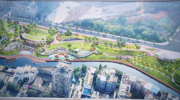 該公園占地約3萬平方米,建設(shè)內(nèi)容涵蓋親水碼頭、海綿型公園綠地、慢跑步道、雨水花園、音樂噴泉、親水廣場、淺灘戲水區(qū)等,配套2個(gè)城市驛站與1個(gè)兒童活動(dòng)區(qū)。項(xiàng)目自今年1月起打圍施工,目前親水碼頭主體已完工,公園總體施工完成30%。